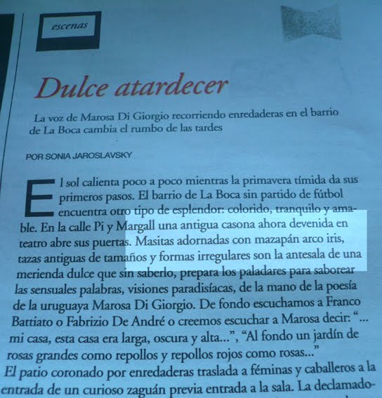 Así mencionaba la prensa nuestra presencia en la obra ROSA BRILLANDO.